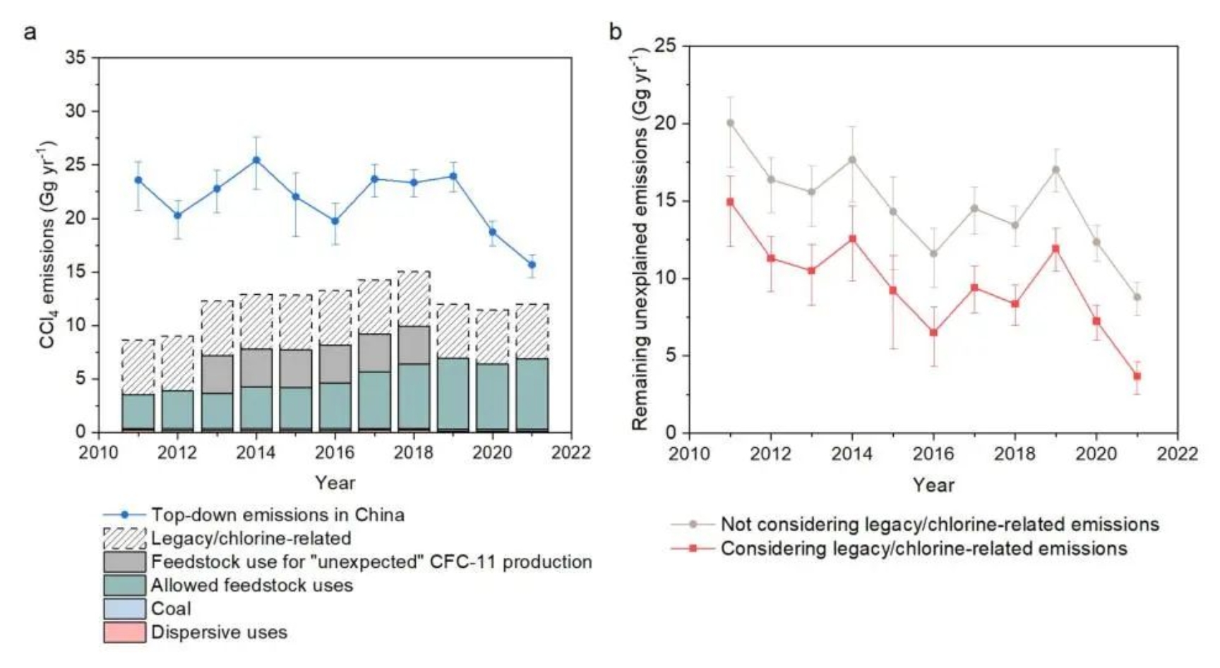 本研究成果为中国及全球其他国家评估与应对四氯化碳遗留排放提供了重要依据。2025年4月,生态环境部联合多部门发布《中国履行〈关于消耗臭氧层物质的蒙特利尔议定书〉国家方案(2025—2030年)》,进一步强化对四氯化碳豁免原料用途的生产配额管理,并提出加强副产排放的监测和管控,推动保护臭氧层履约工作的持续深化。