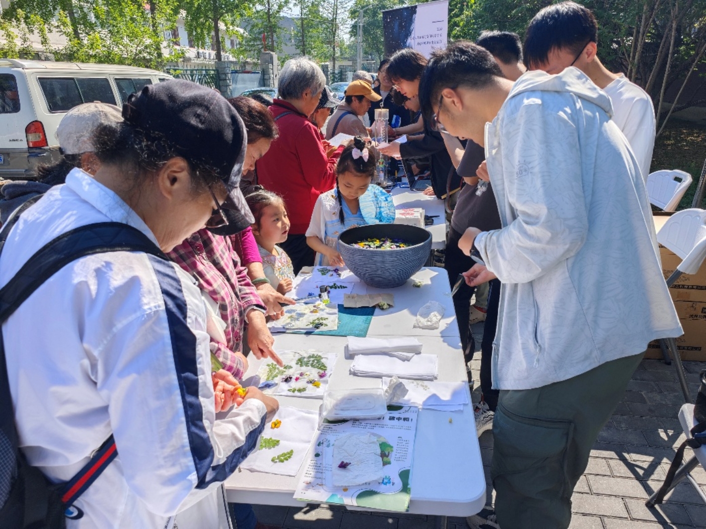 为打破生态环境保护知识的传播壁垒,激发公众主动探索和参与环境保护的热情,活动还设置了“垃圾分类投投投”、“留住大自然:植物拓染”两个互动游戏摊位,在支部成员的带领下,通过趣味性高、互动性强的体验场景,居民深入了解垃圾分类方式等环境领域知识,体验自然,留住自然,加深对生态环境保护的理解。