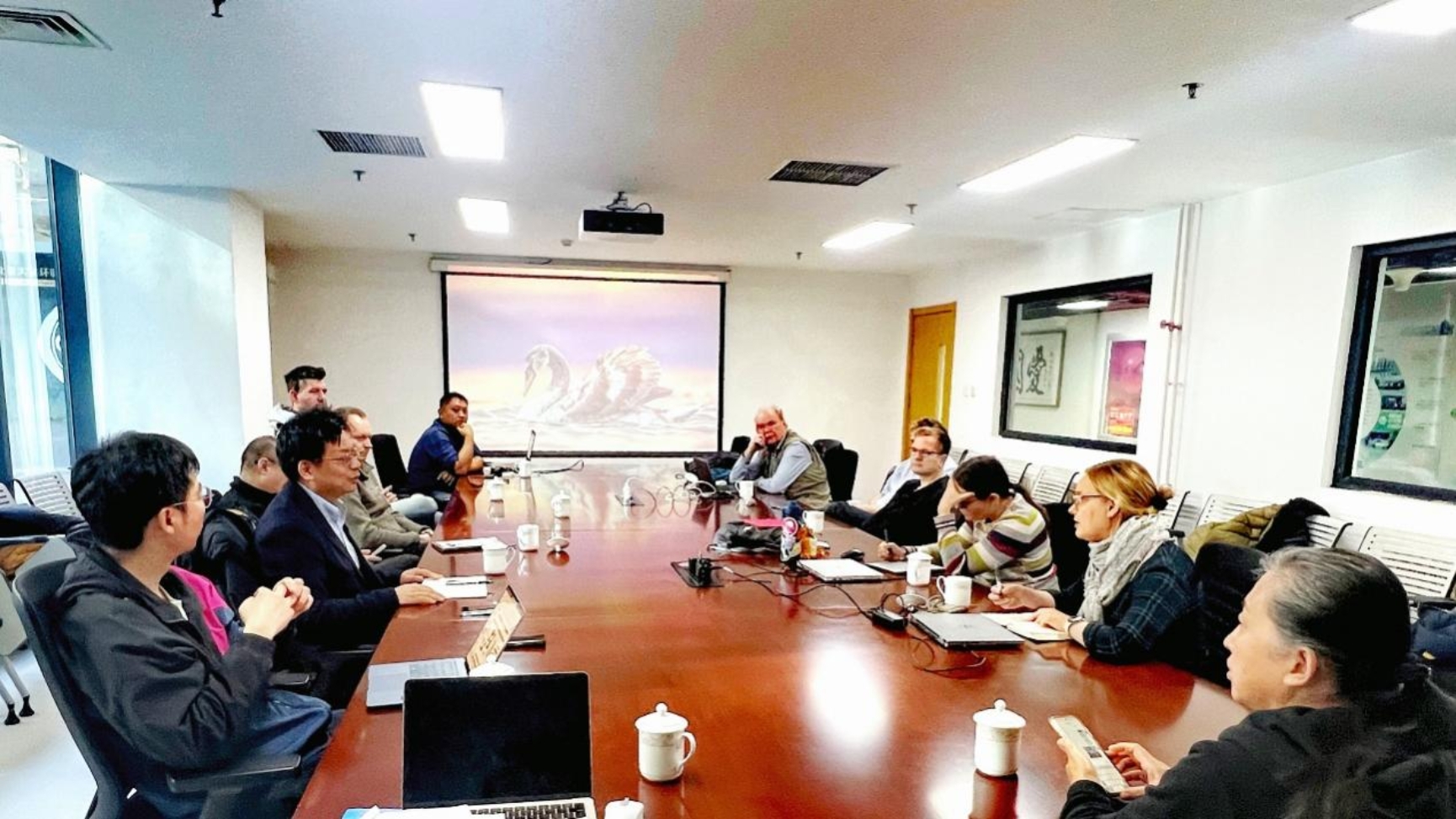 随后,双方围绕共同建立的国际合作科研平台——“区域污染控制国际合作联合实验室”(IJRC)展开了探讨。该联合实验室于2019年正式获批立项建设,并于2025年顺利通过验收。依托联合实验室平台,双方已取得多项原创性成果。会谈中,双方回顾了近年来在自由基化学、气溶胶化学、全球监测网络、大气模拟与测量技术等方向的合作进展,并围绕“十五五”规划动态以及中德合作进展,初步明确了未来的重点发展方向,包括合作开展大型环境模拟器等大科学装置的研究以及联合观测等内容,对未来合作方向进行了热烈交流。双方进一步就研究生及博士后的联合培养事宜进行了深入讨论,计划通过学生交换互访、共同举办暑期学校等形式推进研究生联合培养,并通过双方机构间达成协议,建立博士后联合培养机制。