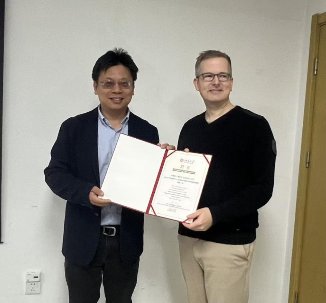 研讨会上,陆克定教授首先代表环境科学与工程学院对于利希研究中心一行来访表示热烈欢迎与感谢。随后,举行FZJ气候与能源系统研究所副所长Hendrik Fuchs教授受聘于环境科学与工程学院环境科学系外籍访问教授的聘任仪式,陆克定教授代表学院向Hendrik Fuchs教授颁发聘书,并对此加入环境学院大家庭表示欢迎与祝贺。